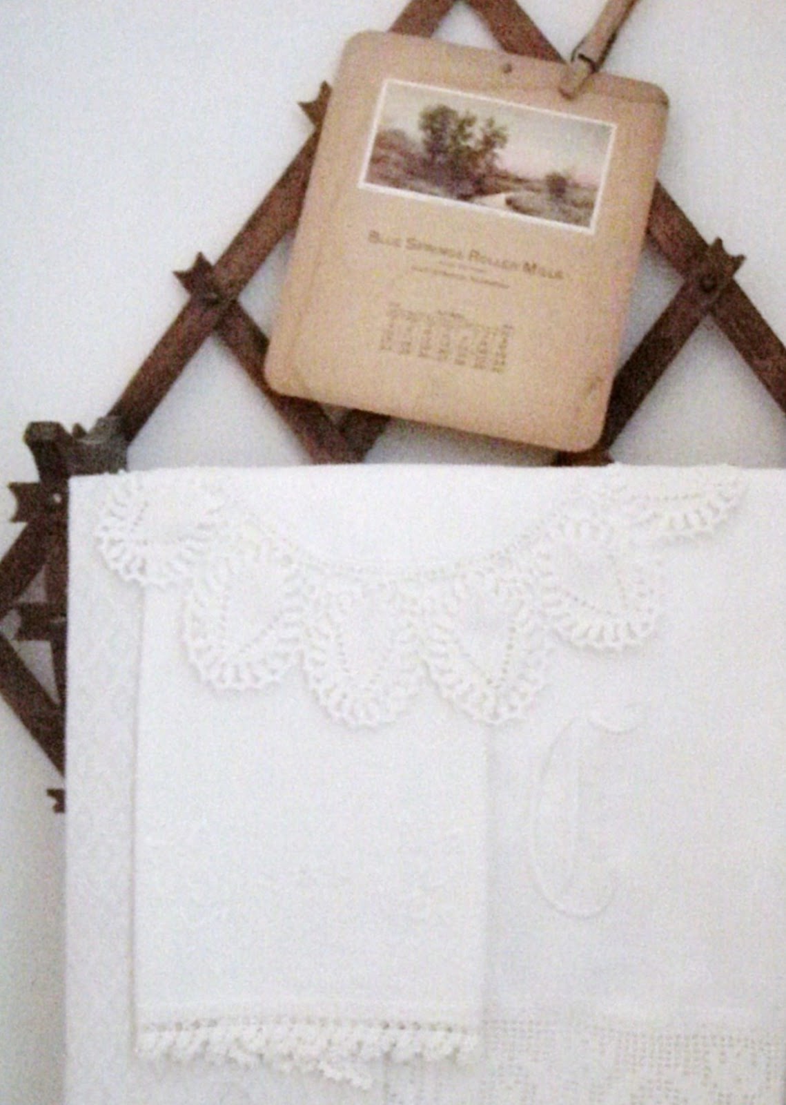 We use a combination of vintage cotton towels and terry. I love how there was once a time that ordinary daily objects had a bit of love and care put into them. First in their quality and construction, and secondly, in their decoration. A little lace edge elevates any ordinary life. And what better way to start or end a day than by appreciating a little homespun beauty?