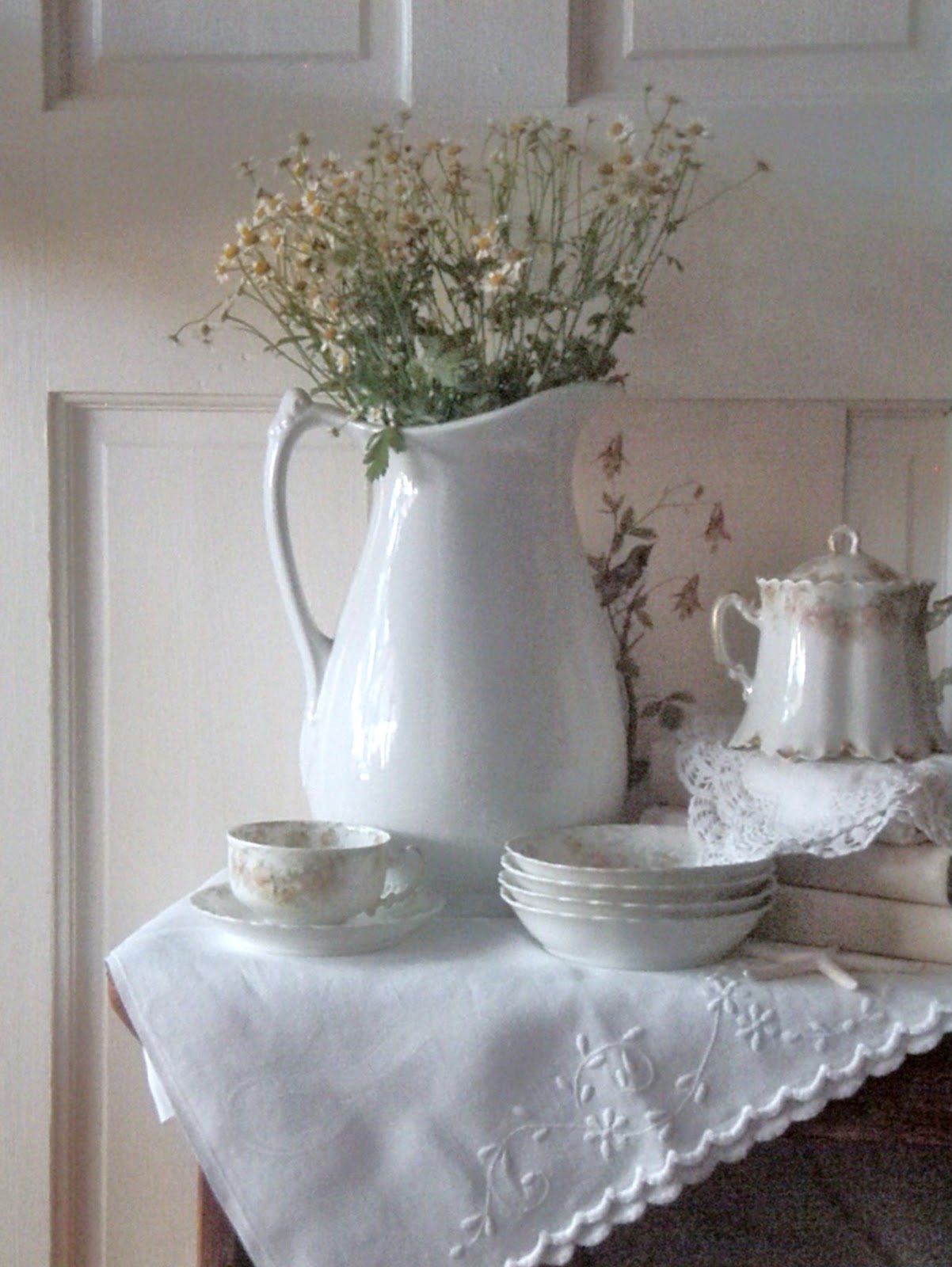 You have some beautiful linens I can see why you'd want to keep them. The thought that blogging helps clean up out act cracked me up because I can so relate.