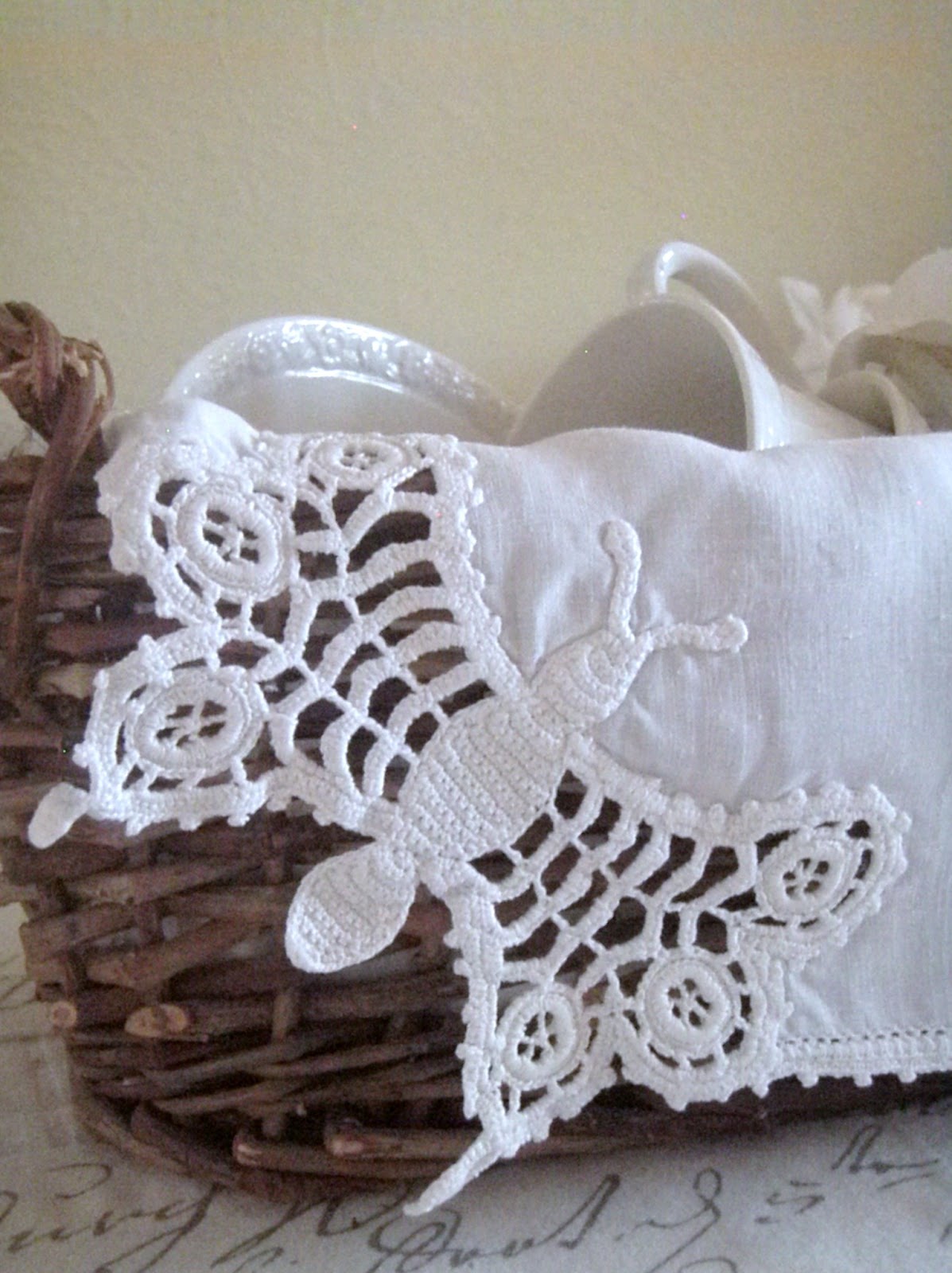 Boy was this blog post a treat for the eyes! So mant pretty things! The linen with the crocheted butterfly in the corner is amazing!!