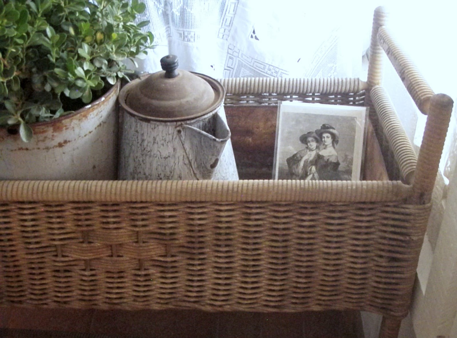 Now I have to tell you that I have a thing for vintage wicker planters too, and once in a while I find them with their original finish. I've let too many of them go, so I'm going to try to hang onto this one for awhile. It just speaks everything I'm always saying to myself these days!