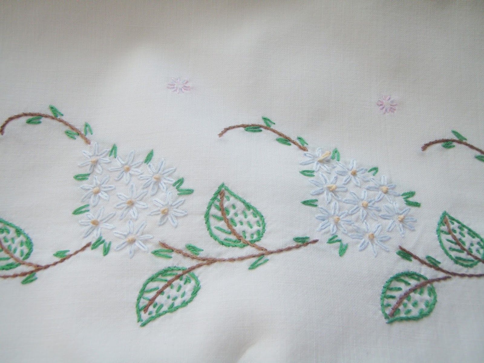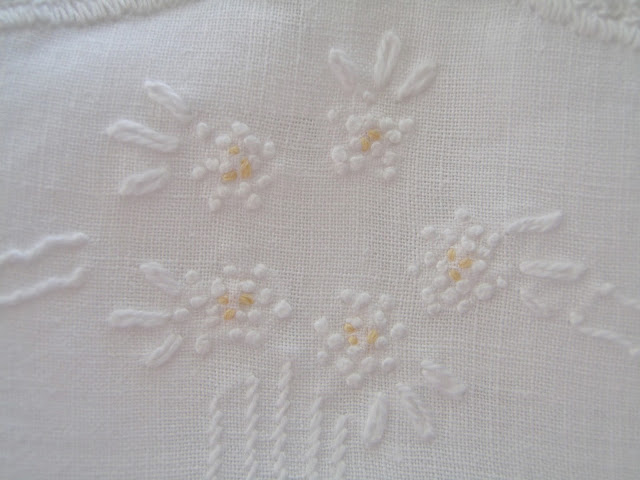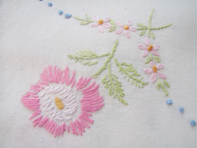 I don't get a lot of small embroidered pieces anymore, but this one was too charming to pass up! A pretty piece like this is a great way to get the youngest generation going on appreciating vintage linen.