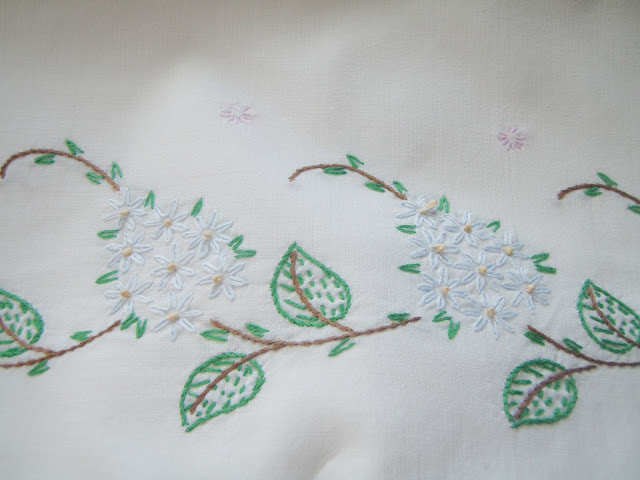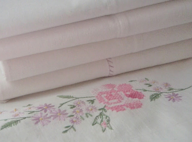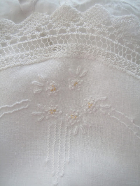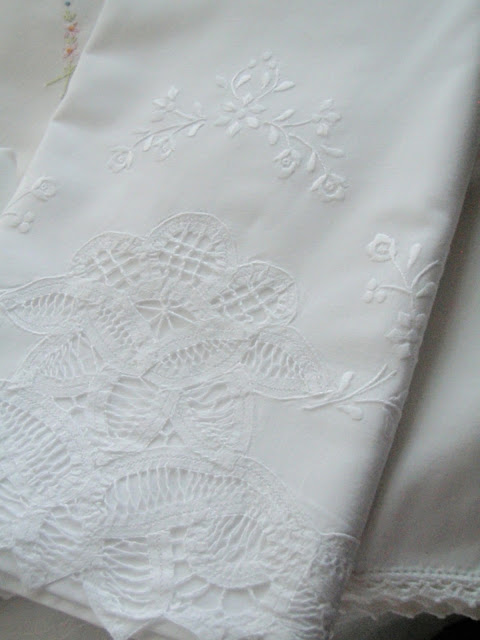I was so lucky to come upon a little stash of pretty linens at a giveaway price this weekend! I don't mind at all having just a single pillowcase when it looks this pretty.