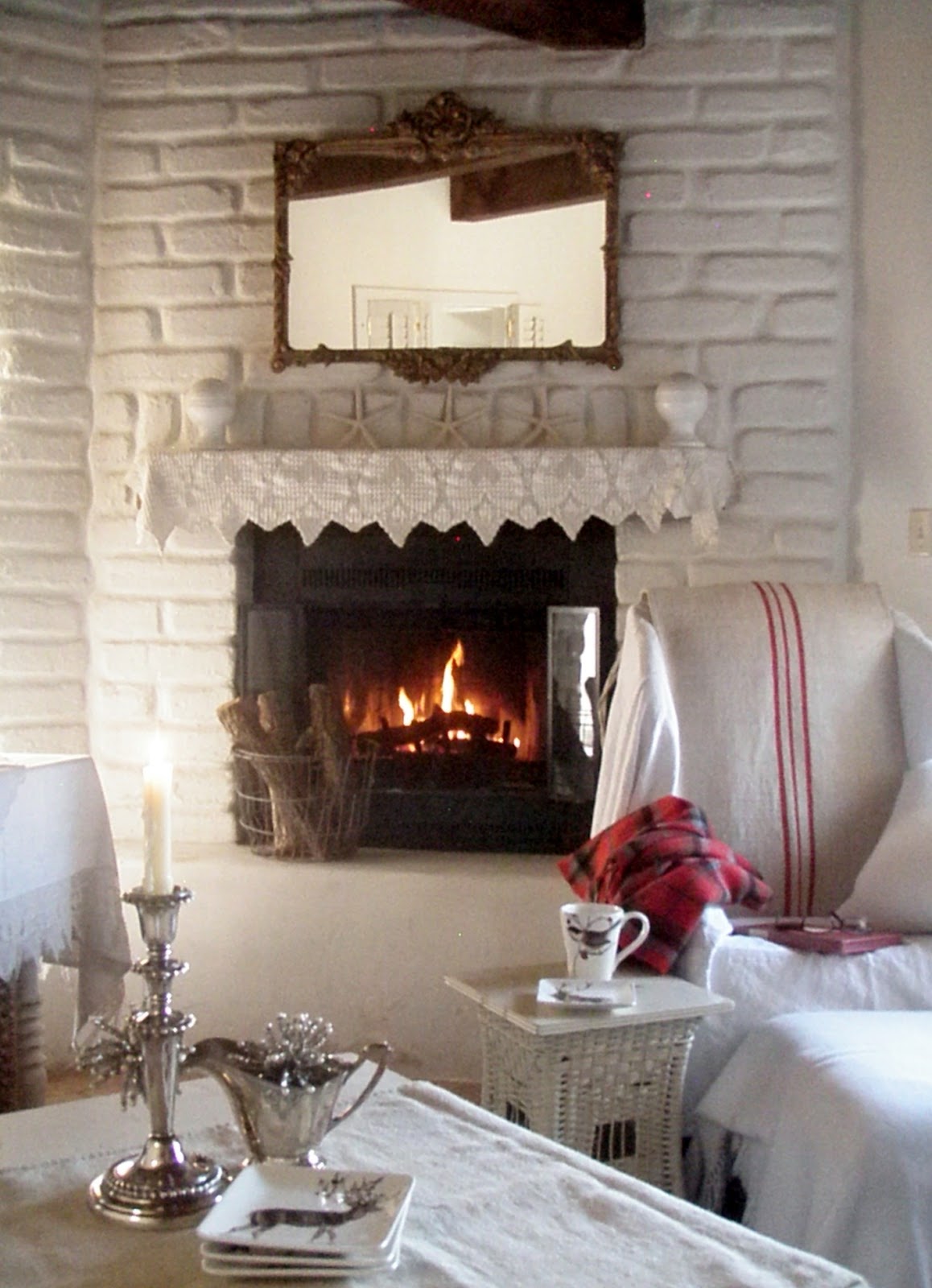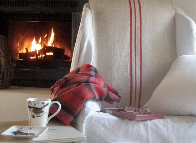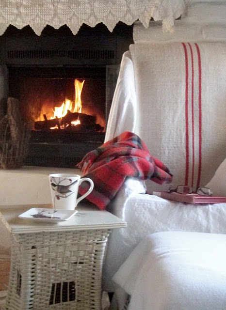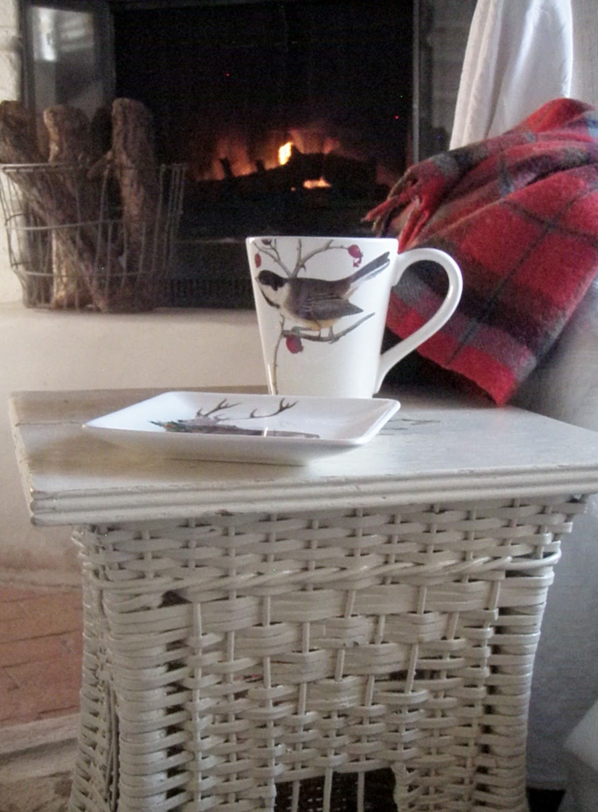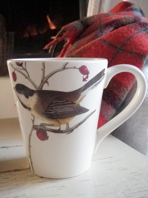 ReplyDeleteThere's so much to love here -- the beautiful twig wreath, the wonderful mugs, your cozy plaid throw, the warm fire and mostly the love I see tucked in amid all the touches!