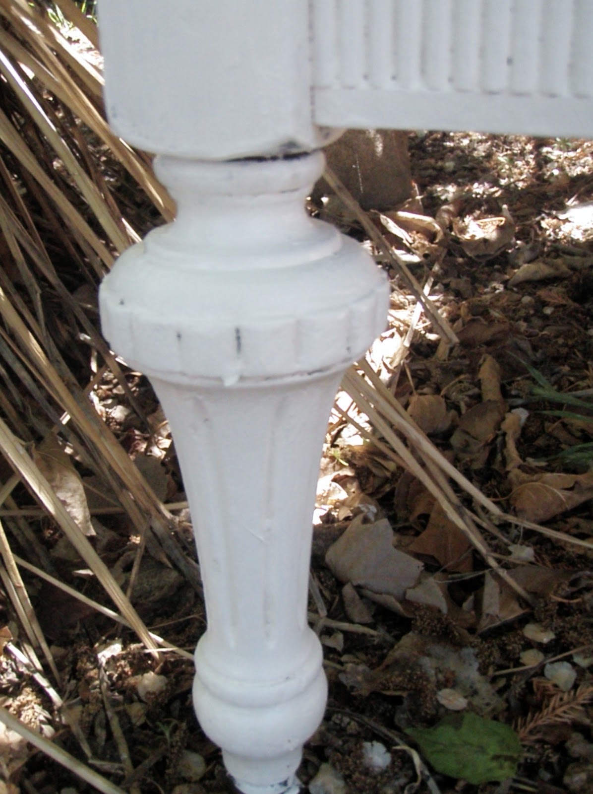 I found this piece beautiful to begin with. It only needed a bit of sprucing up to the wood finish. But white paint shows off so much more of the wonderful details like these from the headboard shown here and in the previous photos.