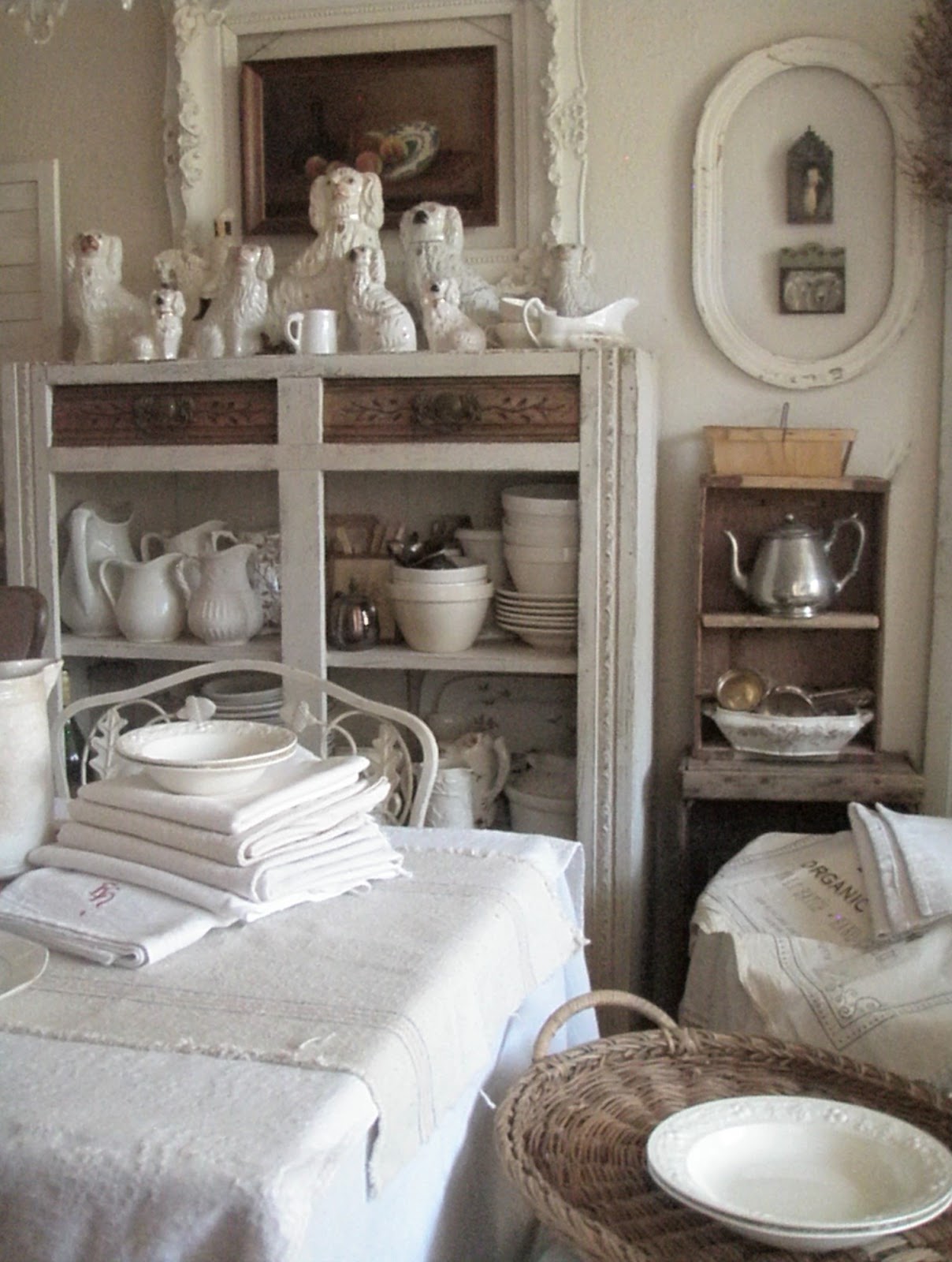 Did you spy this great little kitchen clock sitting there? No longer working, but in the perfect stage of foxing and aged white. Makes my heart go tick tock!