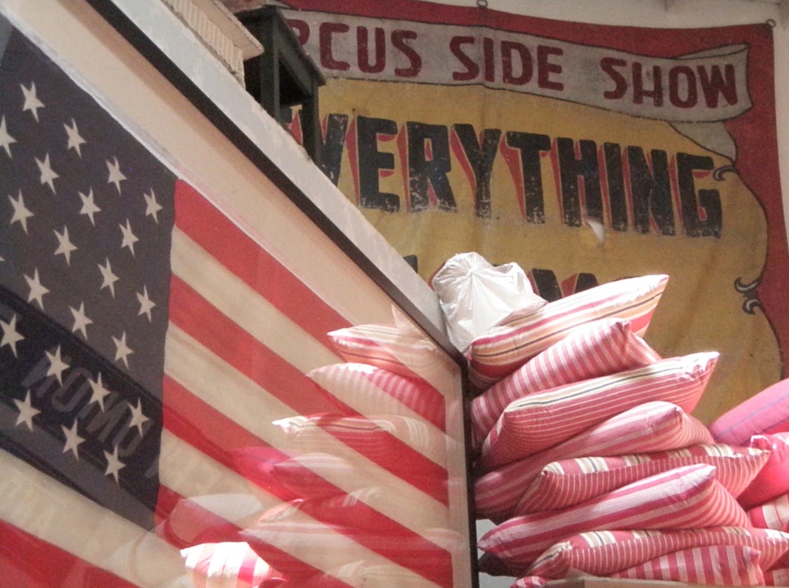 The circus poster in the center space is so apropos. In the space of two hours I took over two hundred photos of  Bountiful,  Pop Pom Interiors, and Rachel Ashwell's Shabby Chic Couture.  LA is not my neighborhood, but I try to stop by maybe once a year. And what a wild side show it always is!
