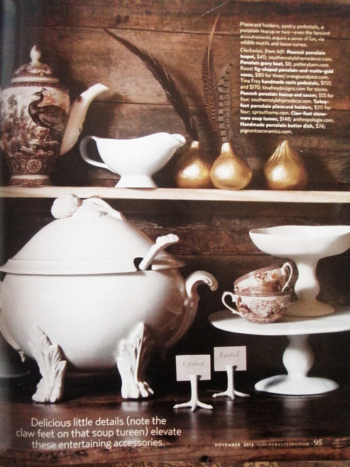 The minute I saw this page from Country Living Magazine waiting in my mailbox I couldn't wait to unpack, and lay things on the table.
