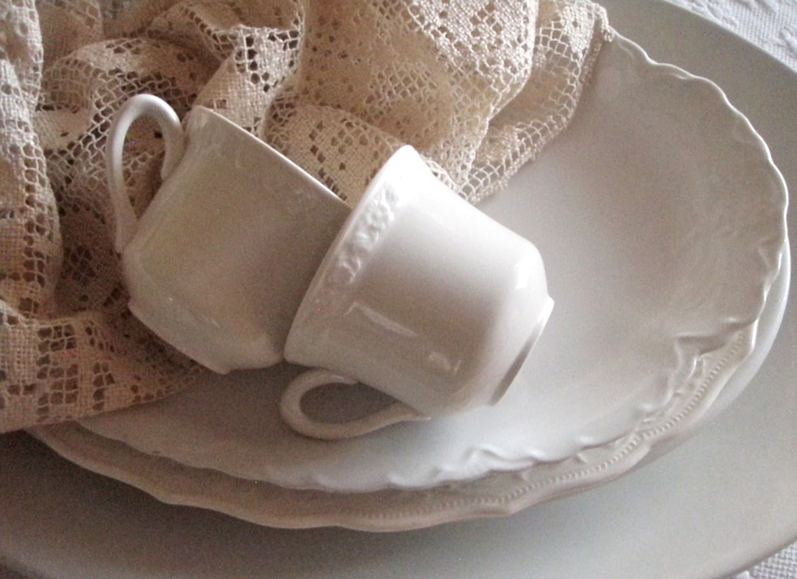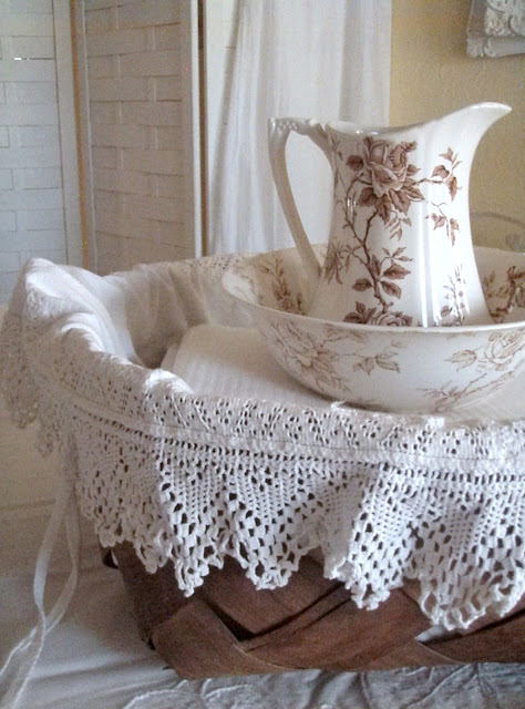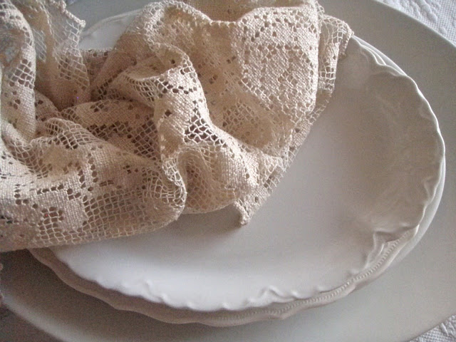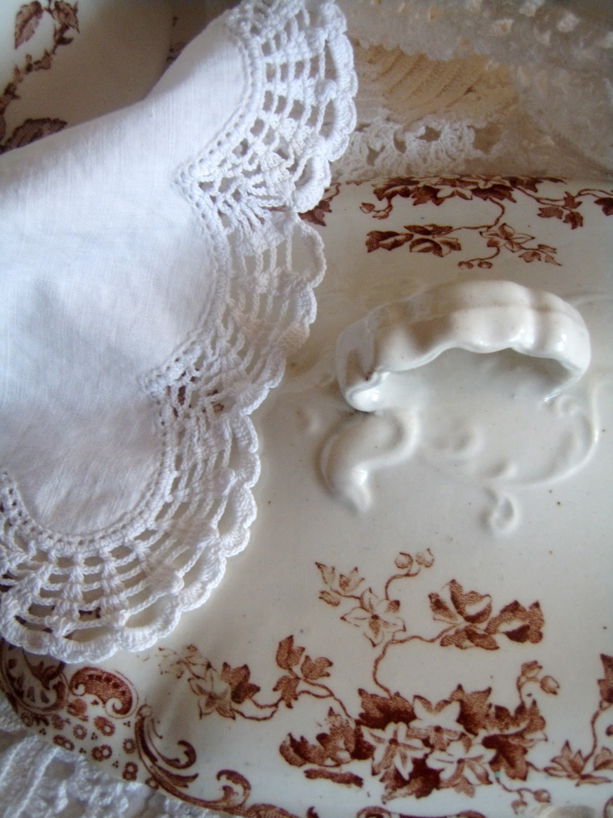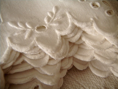 I found these sweet round pieces with the pale pink and cream edges at a local thrift store on the linen racks for a dollar each, which I think is a bit high. But they were irresistible.