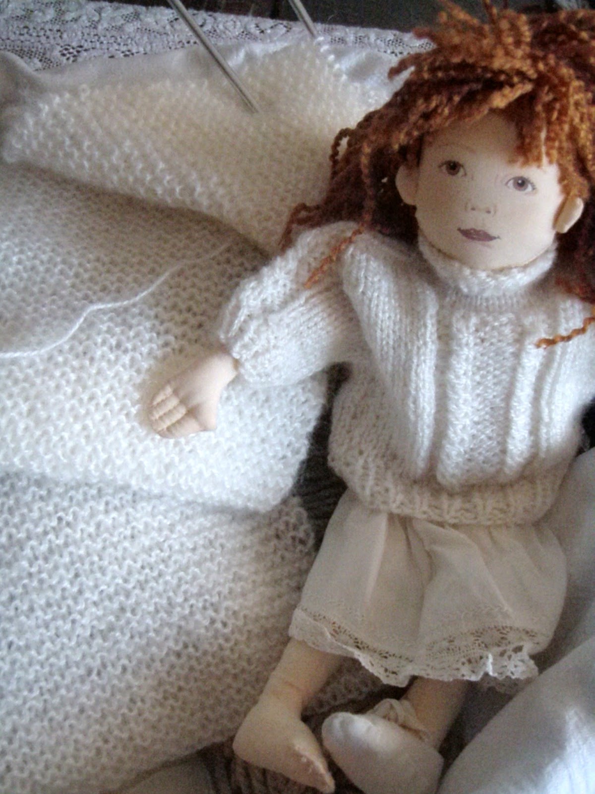 By contrast Miss Helen's modern dress has no hand worked details and has much simpler construction. There is a Velcro closure rather than buttons. It has to be washed very gently so that it doesn't fall apart!