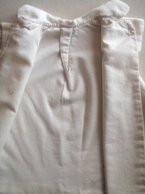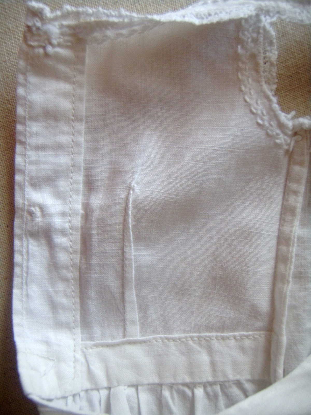 The older the piece, the more fine detail in the construction. I love the darts, facings, and the waistband here. There is even a teensy lace applied to the neck and armholes, as well as hand embroidered feather stitching.