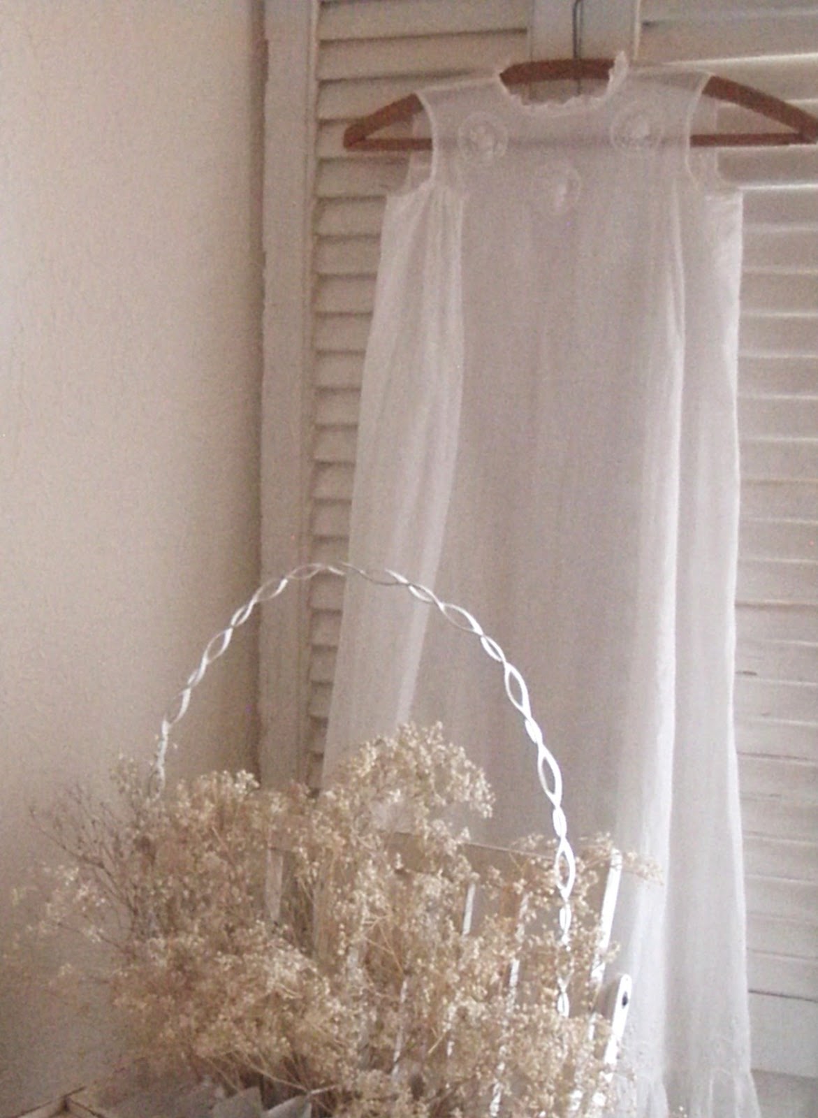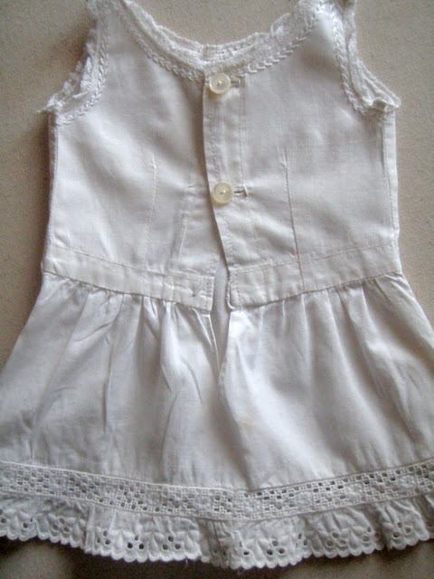 Welcome to my mini world! My recent search for the missing doll shoe (still missing) lead me to some bits of doll laundry I've been meaning to do! Here are a few sweet bits fresh from the wash, and in the perfect damp stage for pressing. The first is a vintage cotton doll slip, wonderfully made, in it's rumpled state. I find even un-ironed cottons have their own charm. Don't you?