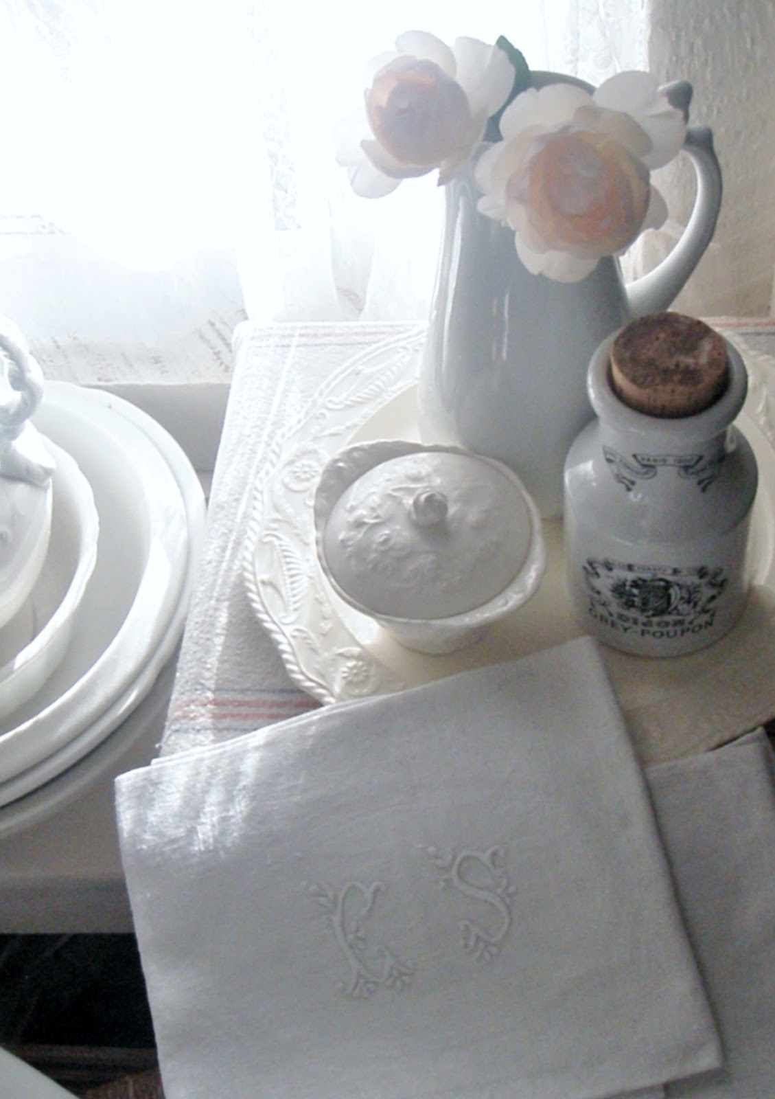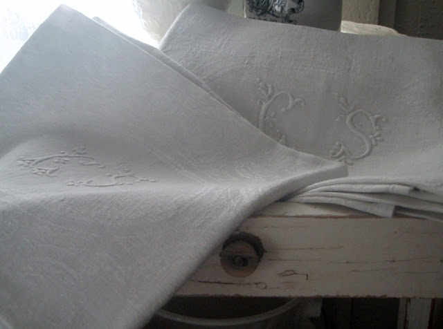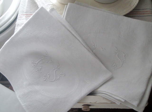 And I brought over my new French momogram towels to highlight the beautiful stitching on the wonderful damask cloth.